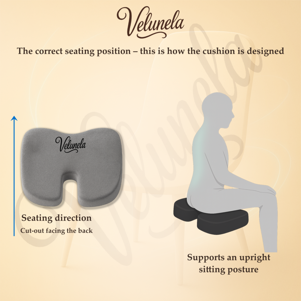 Balance and awareness: We are convinced that an ergonomic cushion can support, relieve pressure, and help prevent discomfort – but it does not replace movement, conscious posture, or an active lifestyle. Velunela complements this balance. It helps distribute pressure, stabilize posture, and make sitting more comfortable – without promising more than it can deliver.