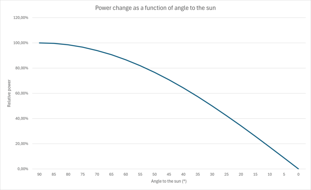 Maximum power is achieved only when sunlight strikes the cells perpendicularly. Even small deviations reduce output: